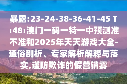 暴露:23-24-38-36-41-45 T:48:澳門一碼一特一中預(yù)測準(zhǔn)不準(zhǔn)和2025年天天游戲大全-通俗剖析、專家解析解釋與落實(shí),謹(jǐn)防欺詐的假營銷霧