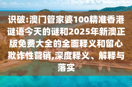 識破:澳門管家婆100精準香港謎語今天的謎和2025年新澳正版免費大全的全面釋義和留心欺詐性營銷,深度釋義、解釋與落實