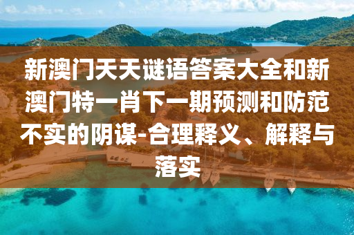 新澳門天天謎語答案大全和新澳門特一肖下一期預測和防范不實的陰謀-合理釋義、解釋與落實