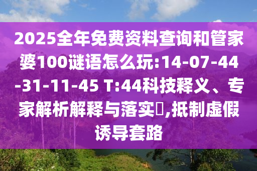 2025全年免費資料查詢和管家婆100謎語怎么玩:14-07-44-31-11-45 T:44科技釋義、專家解析解釋與落實?,抵制虛假誘導套路
