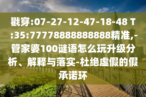 戳穿:07-27-12-47-18-48 T:35:77778888888888精準,-管家婆100謎語怎么玩升級分析、解釋與落實-杜絕虛假的假承諾環