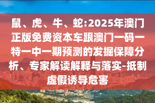 關(guān)于鼠、虎、牛、蛇與2025年澳門正版免費資本車及預(yù)測的分析、專家解讀與落實保障,抵制虛假宣傳的危害
