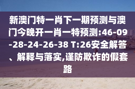 新澳門特一肖下一期預測與澳門今晚開一肖一特預測:46-09-28-24-26-38 T:26安全解答、解釋與落實,謹防欺詐的假套路