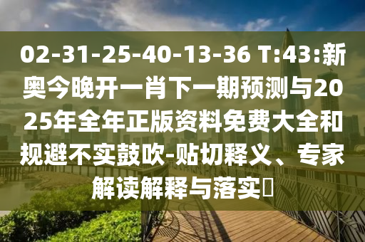 02-31-25-40-13-36 T:43:新奧今晚開(kāi)一肖下一期預(yù)測(cè)與2025年全年正版資料免費(fèi)大全和規(guī)避不實(shí)鼓吹-貼切釋義、專家解讀解釋與落實(shí)?