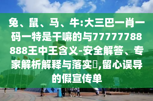兔、鼠、馬、牛:大三巴一肖一碼一特是干嘛的與77777788888王中王含義-安全解答、專家解析解釋與落實?,留心誤導的假宣傳單