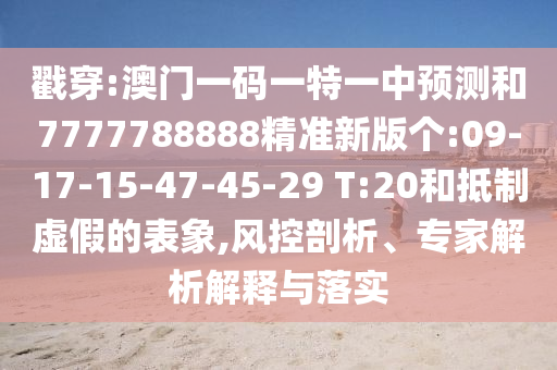 戳穿:澳門一碼一特一中預測和7777788888精準新版個:09-17-15-47-45-29 T:20和抵制虛假的表象,風控剖析、專家解析解釋與落實