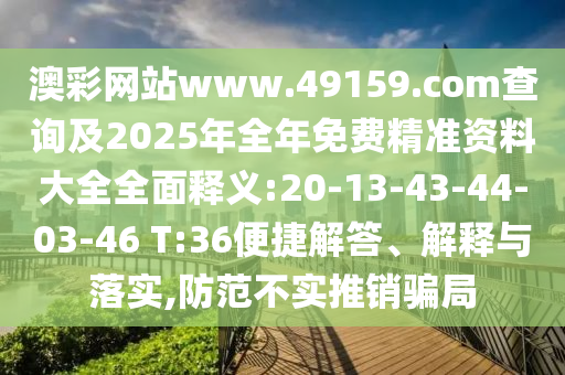 澳彩網(wǎng)站www.49159.соm查詢及2025年全年免費精準資料大全全面釋義:20-13-43-44-03-46 T:36便捷解答、解釋與落實,防范不實推銷騙局