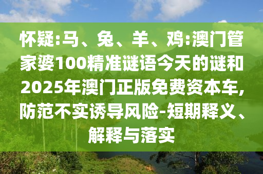 懷疑:馬、兔、羊、雞:澳門管家婆100精準謎語今天的謎和2025年澳門正版免費資本車,防范不實誘導風險-短期釋義、解釋與落實