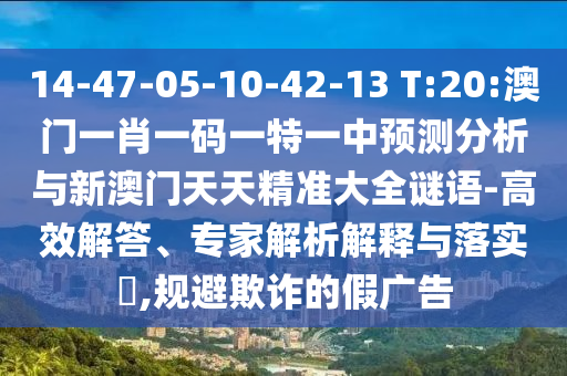 14-47-05-10-42-13 T:20:澳門一肖一碼一特一中預(yù)測分析與新澳門天天精準(zhǔn)大全謎語-高效解答、專家解析解釋與落實(shí)?,規(guī)避欺詐的假廣告