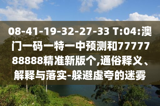 08-41-19-32-27-33 T:04:澳門(mén)一碼一特一中預(yù)測(cè)和7777788888精準(zhǔn)新版?zhèn)€:通俗釋義、解釋與落實(shí)