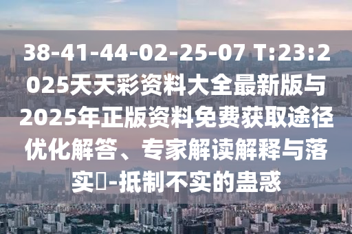 38-41-44-02-25-07 T:23:2025天天彩資料大全最新版與2025年正版資料免費獲取途徑優化解答、專家解讀解釋與落實?-抵制不實的蠱惑