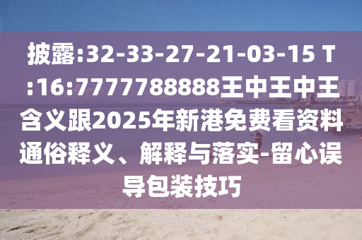 32-33-27-21-03-15 T:16:7777788888王中王中王含義跟2025年新港免費看資料的通俗釋義、解釋與落實