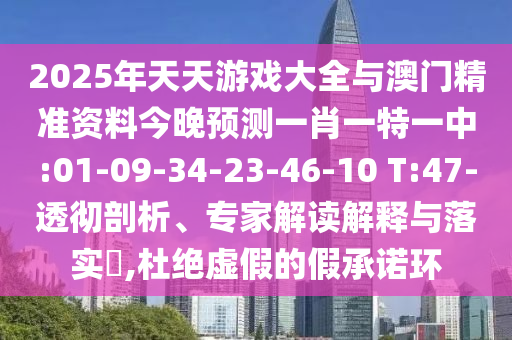 2025年天天游戲大全與澳門精準(zhǔn)資料今晚預(yù)測(cè)一肖一特一中:01-09-34-23-46-10 T:47-透徹剖析、專家解讀解釋與落實(shí)?,杜絕虛假的假承諾環(huán)