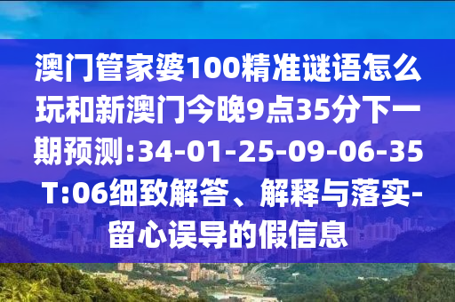 澳門管家婆100精準(zhǔn)謎語怎么玩和新澳門今晚9點35分下一期預(yù)測:34-01-25-09-06-35 T:06細致解答、解釋與落實-留心誤導(dǎo)的假信息