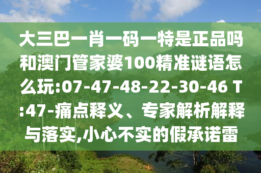 大三巴一肖一碼一特是正品嗎和澳門管家婆100精準謎語怎么玩:07-47-48-22-30-46 T:47-痛點釋義、專家解析解釋與落實,小心不實的假承諾雷