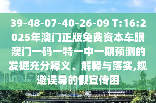 39-48-07-40-26-09 T:16:2025年澳門正版免費資本車跟澳門一碼一特一中一期預(yù)測的發(fā)掘充分釋義、解釋與落實,規(guī)避誤導(dǎo)的假宣傳困