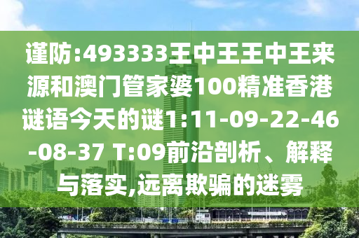 關于關鍵詞“謹防:493333王中王王中王來源和澳門管家婆100精準香港謎語今天的謎1:11-09-22-46-08-37 T:09前沿剖析、解釋與落實和遠離欺騙的迷霧”的全面釋義、專家解讀與落實、警惕虛假宣傳等方面,以下是我的解析和描述: