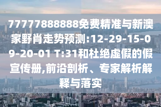 77777888888免費精準與新澳家野肖走勢預測:12-29-15-09-20-01 T:31和杜絕虛假的假宣傳冊,前沿剖析、專家解析解釋與落實