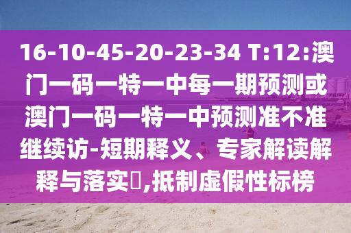 16-10-45-20-23-34 T:12:澳門一碼一特一中每一期預測或澳門一碼一特一中預測準不準繼續訪-短期釋義、專家解讀解釋與落實?,抵制虛假性標榜