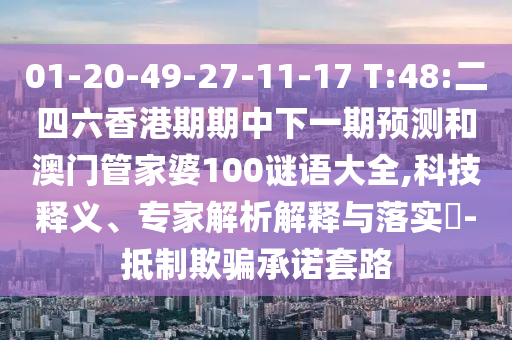 對于關鍵詞“01-20-49-27-11-17 T:48:二四六香港期期中下一期預測和澳門管家婆100謎語大全”,我們可以從以下幾個方面進行釋義: