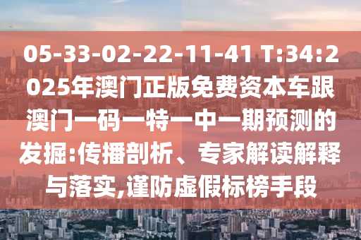 05-33-02-22-11-41 T:34:2025年澳門正版免費(fèi)資本車跟澳門一碼一特一中一期預(yù)測(cè)的發(fā)掘:傳播剖析、專家解讀解釋與落實(shí)