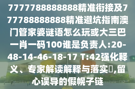 7777788888888精準(zhǔn)銜接及777788888888精準(zhǔn)避坑指南澳門管家婆謎語(yǔ)怎么玩或大三巴一肖一碼100誰(shuí)是負(fù)責(zé)人:20-48-14-46-18-17 T:42的強(qiáng)化釋義、專家解讀解釋與落實(shí)?