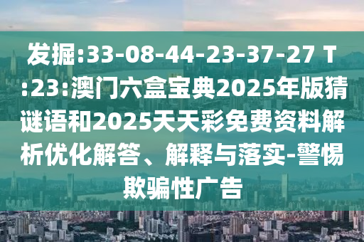 發掘:33-08-44-23-37-27 T:23:澳門六盒寶典2025年版猜謎語和2025天天彩免費資料解析優化解答、解釋與落實-警惕欺騙性廣告