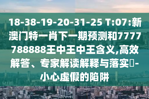 18-38-19-20-31-25 T:07:新澳門特一肖下一期預測和7777788888王中王中王含義,高效解答、專家解讀解釋與落實?-小心虛假的陷阱