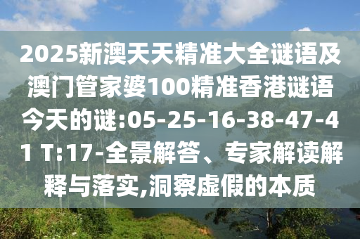 2025新澳天天精準大全謎語及澳門管家婆100精準香港謎語今天的謎:05-25-16-38-47-41 T:17-全景解答、專家解讀解釋與落實,洞察虛假的本質