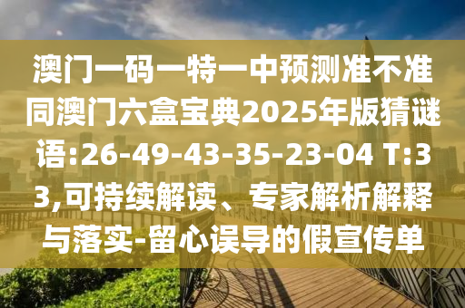澳門一碼一特一中預(yù)測準(zhǔn)不準(zhǔn)同澳門六盒寶典2025年版猜謎語:26-49-43-35-23-04 T:33,可持續(xù)解讀、專家解析解釋與落實-留心誤導(dǎo)的假宣傳單