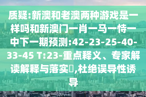 質疑:新澳和老澳兩種游戲是一樣嗎和新澳門一肖一馬一恃一中下一期預測:42-23-25-40-33-45 T:23-重點釋義、專家解讀解釋與落實?,杜絕誤導性誘導