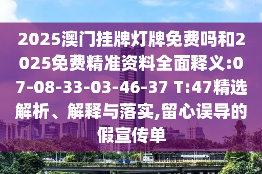 2025澳門掛牌燈牌免費嗎和2025免費精準資料全面釋義:07-08-33-03-46-37 T:47精選解析、解釋與落實,留心誤導的假宣傳單