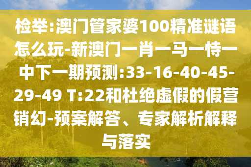 檢舉:澳門管家婆100精準謎語怎么玩-新澳門一肖一馬一恃一中下一期預測:33-16-40-45-29-49 T:22和杜絕虛假的假營銷幻-預案解答、專家解析解釋與落實
