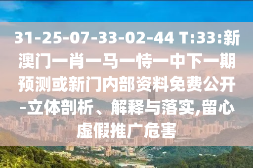 31-25-07-33-02-44 T:33:新澳門一肖一馬一恃一中下一期預測或新門內部資料免費公開-立體剖析、解釋與落實,留心虛假推廣危害