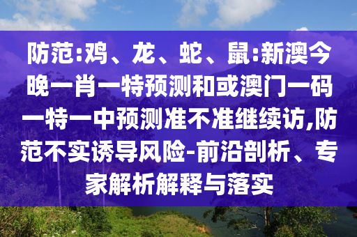 關(guān)于防范雞、龍、蛇、鼠生肖與“新澳今晚一肖一特預(yù)測”、“澳門一碼一特一中預(yù)測”等相關(guān)內(nèi)容的剖析、專家解析及防范虛假宣傳的警告