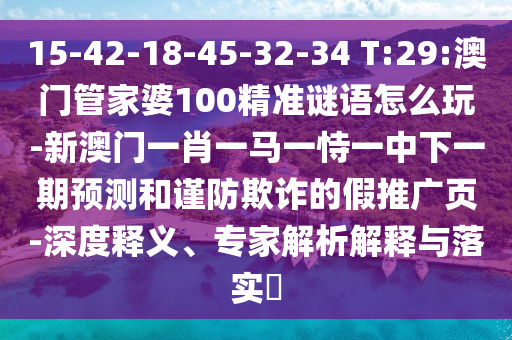 15-42-18-45-32-34 T:29:澳門管家婆100精準(zhǔn)謎語怎么玩-新澳門一肖一馬一恃一中下一期預(yù)測(cè)和謹(jǐn)防欺詐的假推廣頁-深度釋義、專家解析解釋與落實(shí)?