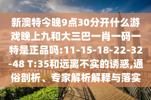 新澳特今晚9點30分開什么游戲晚上九和大三巴一肖一碼一特是正品嗎:11-15-18-22-32-48 T:35和遠離不實的誘惑,通俗剖析、專家解析解釋與落實