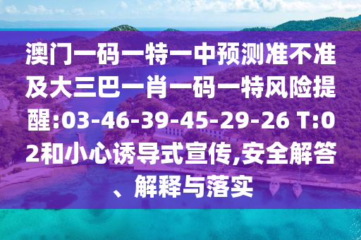 澳門一碼一特一中預測準不準及大三巴一肖一碼一特風險提醒:03-46-39-45-29-26 T:02和小心誘導式宣傳,安全解答、解釋與落實