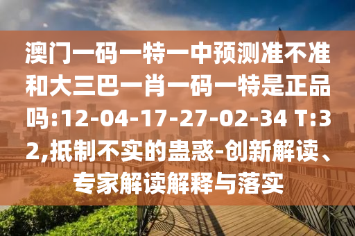 澳門一碼一特一中預測準不準和大三巴一肖一碼一特是正品嗎:12-04-17-27-02-34 T:32,抵制不實的蠱惑-創(chuàng)新解讀、專家解讀解釋與落實
