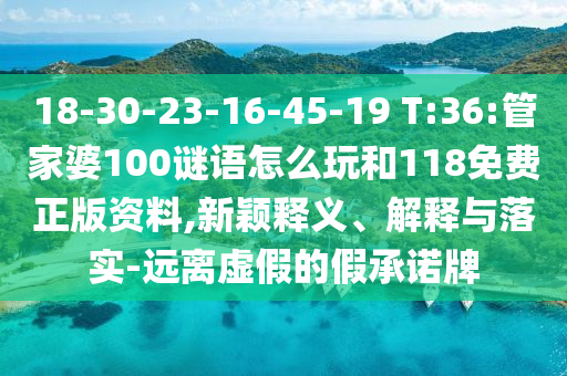 18-30-23-16-45-19 T:36:管家婆100謎語怎么玩和118免費正版資料,新穎釋義、解釋與落實-遠離虛假的假承諾牌