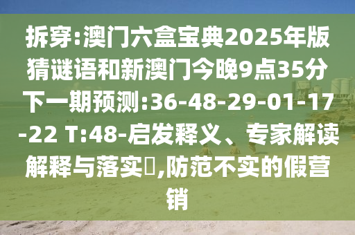 拆穿:澳門六盒寶典2025年版猜謎語和新澳門今晚9點35分下一期預測:36-48-29-01-17-22 T:48-啟發釋義、專家解讀解釋與落實?,防范不實的假營銷