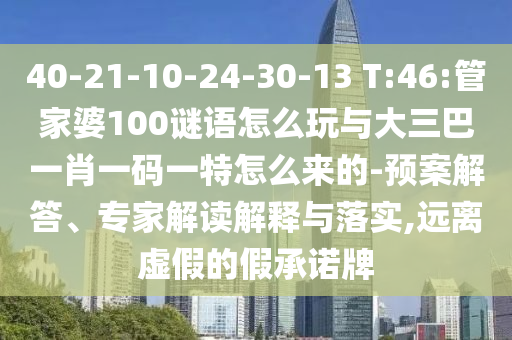 40-21-10-24-30-13 T:46:管家婆100謎語怎么玩與大三巴一肖一碼一特怎么來的-預案解答、專家解讀解釋與落實,遠離虛假的假承諾牌