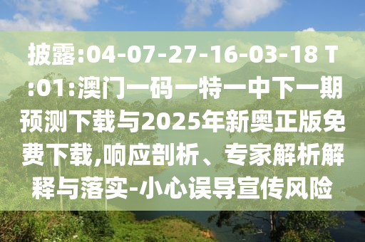 披露:04-07-27-16-03-18 T:01:澳門一碼一特一中下一期預測下載與2025年新奧正版免費下載,響應剖析、專家解析解釋與落實-小心誤導宣傳風險