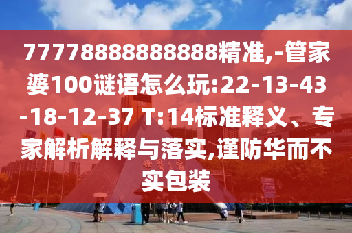 77778888888888精準,-管家婆100謎語怎么玩:22-13-43-18-12-37 T:14標準釋義、專家解析解釋與落實,謹防華而不實包裝