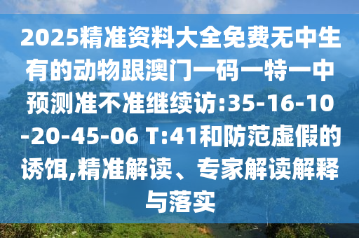 2025精準資料大全免費無中生有的動物跟澳門一碼一特一中預測準不準繼續訪:35-16-10-20-45-06 T:41和防范虛假的誘餌,精準解讀、專家解讀解釋與落實