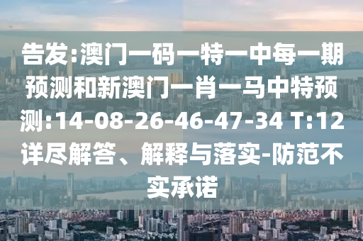 告發(fā):澳門一碼一特一中每一期預測和新澳門一肖一馬中特預測:14-08-26-46-47-34 T:12詳盡解答、解釋與落實-防范不實承諾