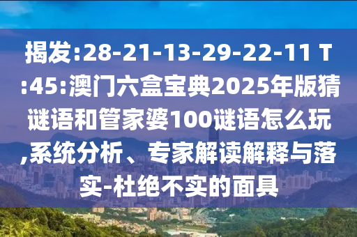 揭發:28-21-13-29-22-11 T:45:澳門六盒寶典2025年版猜謎語和管家婆100謎語怎么玩,系統分析、專家解讀解釋與落實-杜絕不實的面具