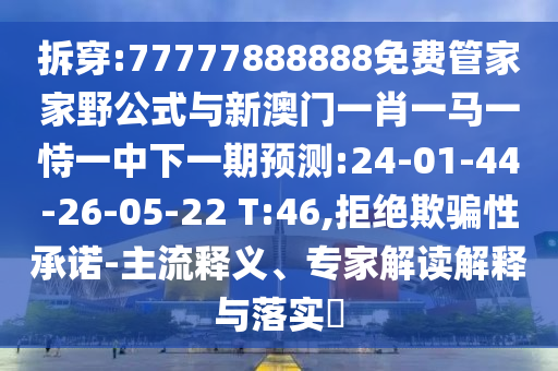 拆穿:77777888888免費管家家野公式與新澳門一肖一馬一恃一中下一期預(yù)測:24-01-44-26-05-22 T:46,拒絕欺騙性承諾-主流釋義、專家解讀解釋與落實?
