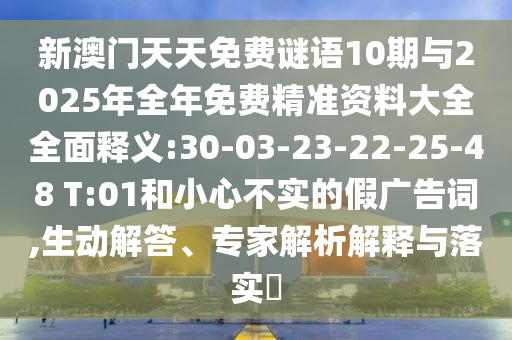 新澳門天天免費謎語10期與2025年全年免費精準資料大全全面釋義:30-03-23-22-25-48 T:01和小心不實的假廣告詞,生動解答、專家解析解釋與落實?