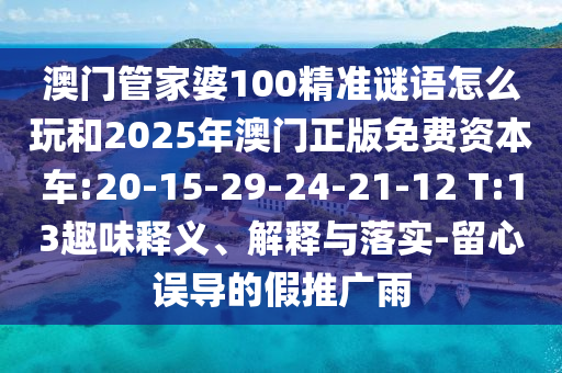澳門管家婆100精準謎語怎么玩和2025年澳門正版免費資本車:20-15-29-24-21-12 T:13趣味釋義、解釋與落實-留心誤導的假推廣雨